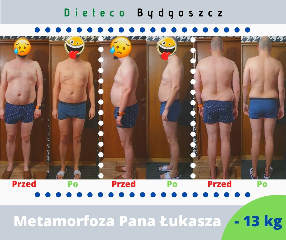 Dziś mamy zaszczyt przedstawić naszego pacjenta z Bydgoszczy. Dzięki własnemu zaangażowaniu i wytrwałości odniósł ogromny sukces. Panu Łukaszowi udało się zgubić aż 13 kg. Dodatkowo poprawiły się jego wyniki krwi, m.in. obniżyły się: cholesterol, trójglicerydy oraz glukoza. Gratulujemy i życzymy dalszych sukcesów.