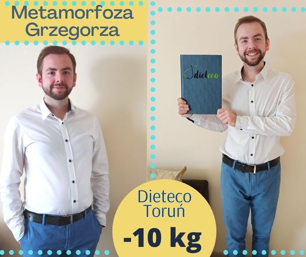 Jak czuje się Pan Grzegorz po swojej metamorfozie? „Moją motywacją do schudnięcia była chęć zmiany nawyków żywieniowych i lepsze samopoczucie. Początki były trudne. Odstawienie słodyczy, brak słodkich napojów gazowanych oraz pilnowanie się aby nie podjadać. W zamian za to woda, dużo owoców i warzyw. Dzięki uporowi i radom Pani Gosi schudłem 10kg w 3 miesiące. Teraz o wiele lepiej się czuję, nie mam zadyszki po wejściu na 3 piętro. Serdecznie polecam Dieteco wszystkim którzy chcą stracić parę kilogramów i zmienić swoje życie. ”